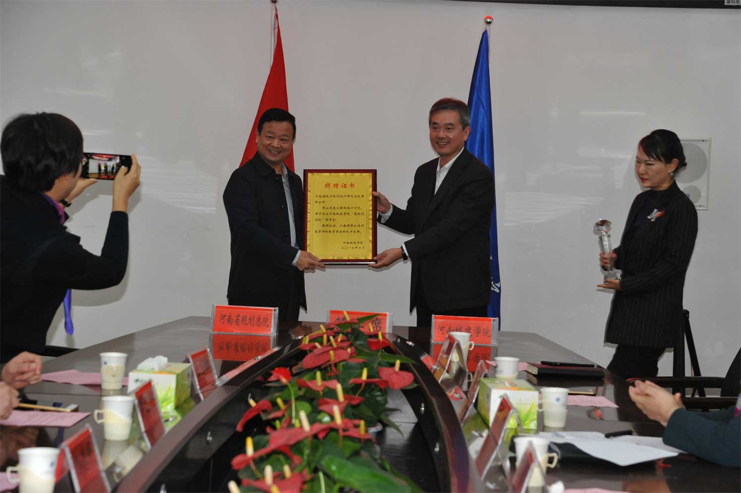 簽約儀式上,王召東校長(zhǎng)向我院頒發(fā)了捐贈(zèng)證書和紀(jì)念杯,尹衛(wèi)紅副院長(zhǎng)與楊留栓副校長(zhǎng)共同簽訂了捐贈(zèng)協(xié)議和實(shí)習(xí)基地協(xié)議。