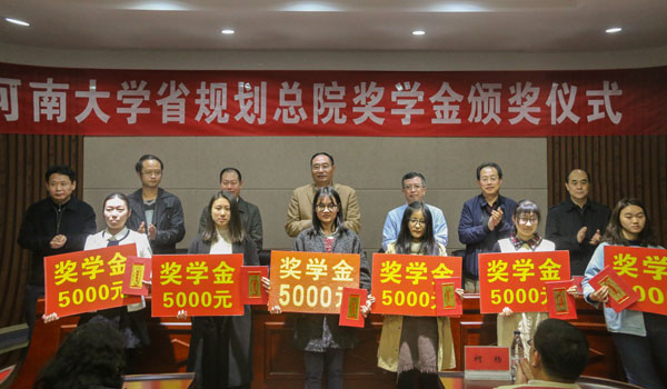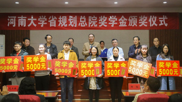 河南大學(xué)教育發(fā)展基金會秘書處秘書長郭志祥宣讀了《河南大學(xué)土木建筑學(xué)院關(guān)于表彰2016—017學(xué)年河南大學(xué)“省規(guī)劃總院獎學(xué)金”獲得者的決定》。孫君健、尹衛(wèi)紅、麻永建、郭志祥、李社教、鮑鵬等為獲獎學(xué)生頒發(fā)了獎學(xué)金及榮譽證書。