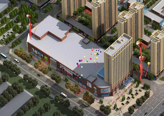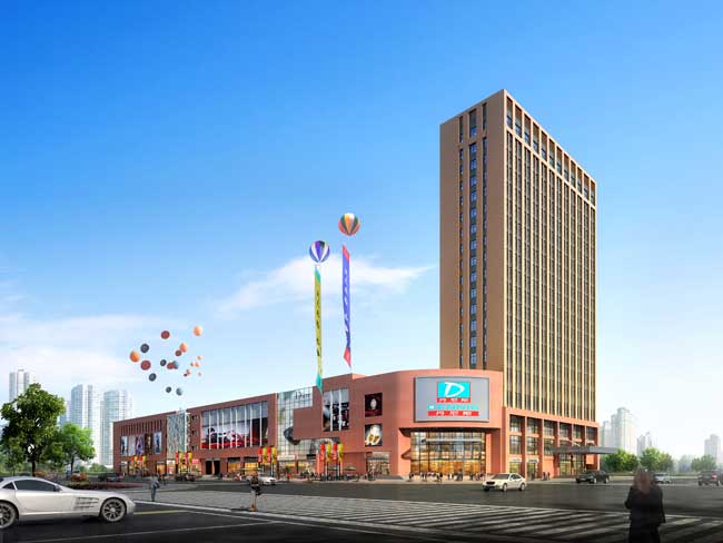 本項目總建筑面積為:90664.93㎡,是一個包含地下車庫、百貨、超市、電影院、高檔酒店為一體的大型商業(yè)綜合體。利用建筑空間的復(fù)合化、集約化和開放化,建立一種依存、助益的空間能動關(guān)系,形成多功能,高效率的聚集體。