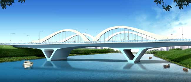 項(xiàng)目概況:三門峽市大嶺路澗河立交橋工程位于三門峽市湖濱區(qū),北起北堤路,向南上跨青龍澗河、南堤路,下穿陜州大道,與南環(huán)路平交。大嶺路與陜州大道立交為苜蓿葉型全互通立交??缭角帻垵竞哟髽虿捎萌鏥型墩剛構(gòu)橋,主體長(zhǎng)度152米,跨徑布置為42米+68米+42米,橋上設(shè)天鵝造型景觀裝飾拱。本項(xiàng)目已經(jīng)成為三門峽市一個(gè)重要的交通樞紐及標(biāo)志性的景觀點(diǎn)。