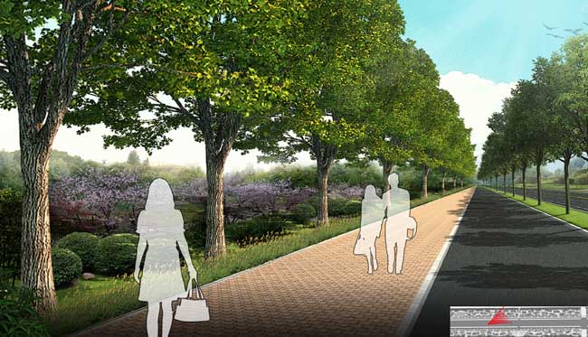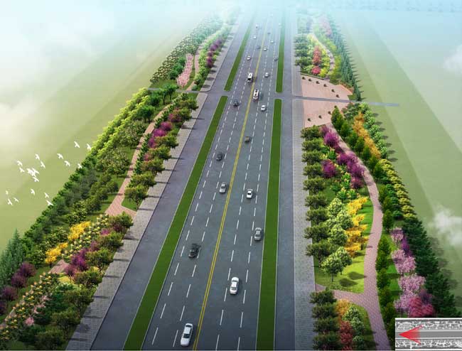 項目簡介:該道路具有省道的功能,在承載產業(yè)集聚區(qū)城市道路功能的同時,還承載了區(qū)域的物流通道的功能。設計體現生態(tài)共融原則、暢通安全原則、協(xié)調統(tǒng)一原則、經濟節(jié)約原則,使之成為防塵降噪、自然過渡、生態(tài)屏障的生態(tài)廊道;活力運動、綠色出行、健康游憩的慢行綠廊;出入市口、新城氣息、綠意盎然的形象展示;超大綠化、春花秋實、夏蔭冬青的景觀美化。