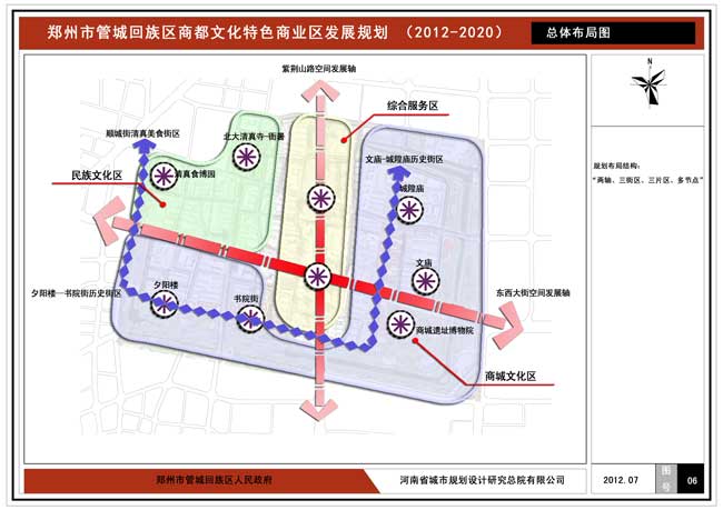 發(fā)展定位:華夏歷史文明傳承創(chuàng)新的重要載體、商都文化旅游核心區(qū)、民族特色文化集中展示區(qū)、鄭州市區(qū)域級(jí)商業(yè)中心。