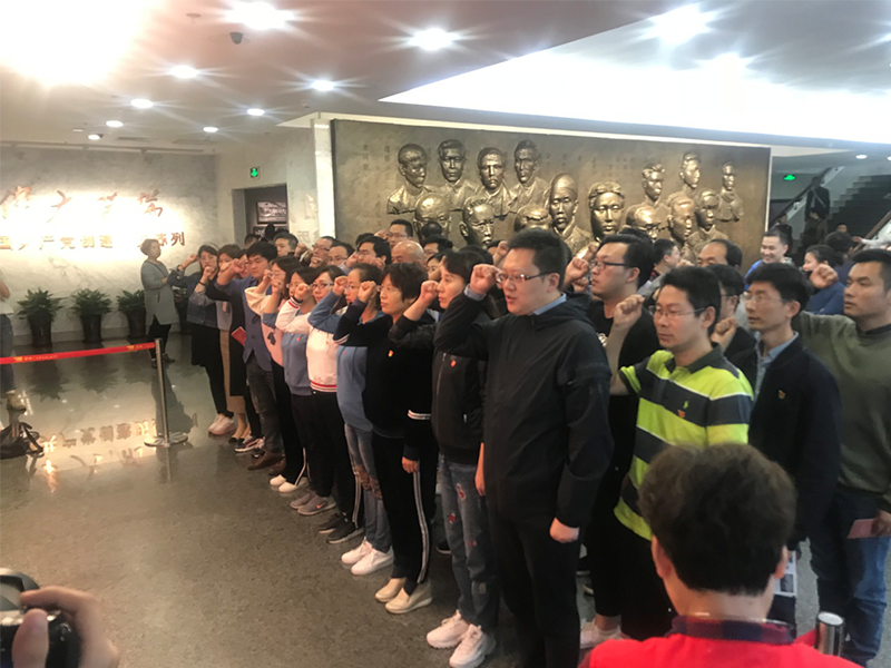 上海中共一大會址紀念館,外墻青紅磚交錯,烏黑的鐵門,莊嚴肅穆。展廳中李大釗、陳望道、張人亞……一個個光輝的革命先驅(qū)形象,以穿越時空的方式,在這里向參觀者敘述他們的理想和信念。我們全體黨員在宣誓廳面對鮮紅的黨旗,莊嚴的舉起右手,重溫了入黨誓詞。參觀過程中,黨員們認真聽、仔細看、用心記,在一件件珍貴展品前流連,在一個個歷史場景中思索,在莊嚴肅穆的氛圍中默默體悟,感受到了中國共產(chǎn)黨建黨時的艱辛、革命先輩堅定的理想信念、以及面對困難與挫折時不忘初心砥礪前行的精神。